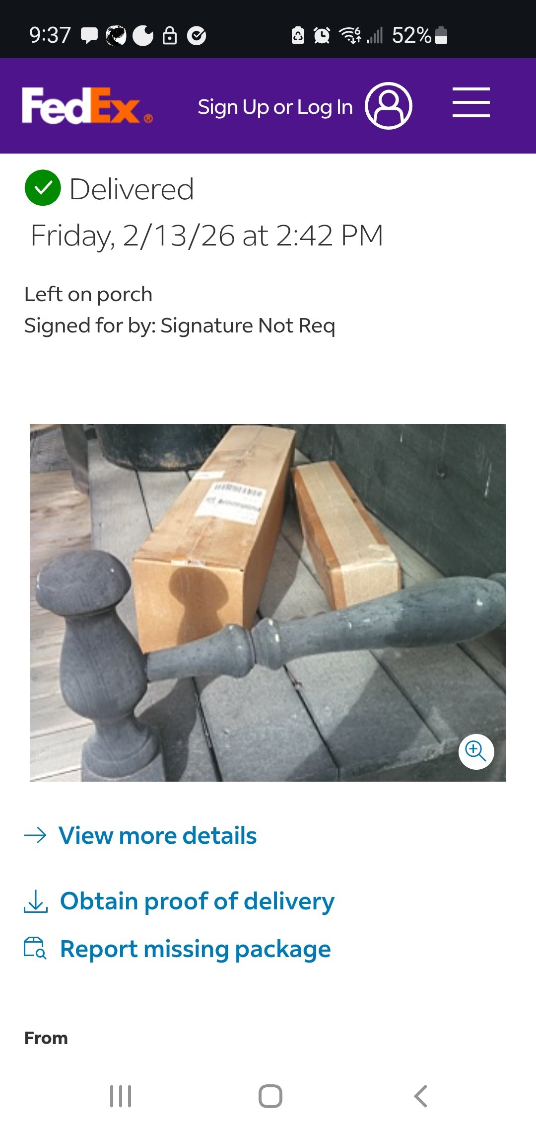 Anyhoo, I found another deck, added more stuff so I could get free shipping (like I said, I’m all about free shipping), and patiently waited. I was ecstatic when I got the email that it had been shipped the next day. I eagerly awaited the arrival. I even checked my post office box every day for a week. On the day it said it was delivered, it was a Saturday, so I figured it would be in my box on Monday morning. However, I felt a nidge to check the tracking from the company. If it was delivered, it would say “In post office box” or “In locker.” The email did not. It said “Delivered. Front Porch.” I went outside and looked. Nothing. I clicked the link that said it was delivered to my front porch. I was sent to FedEx’s website. I entered the tracking number and sure enough, there was a picture of a couple of boxes on what appeared to be a porch. Just not my porch.